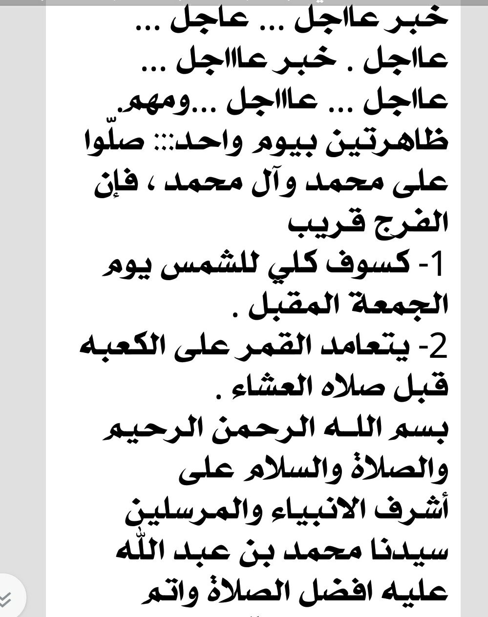كلام مكذوب كسوف كلي للشمس وتعامد القمر الأحاديث والرسائل غير الصحيحة المنتشرة جبهة دفاع قناة الأمة الفضائية فيسبوك