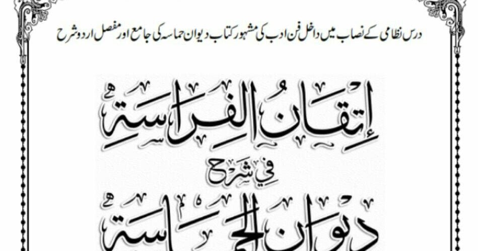 Itqan Ul Farasa Sharah Diwan Ul Hamasa اتقان الفراسة فی شرح دیوان الحماسة By مولانا رسول بخش قادری Ataunnabi Islamic Pdf Books