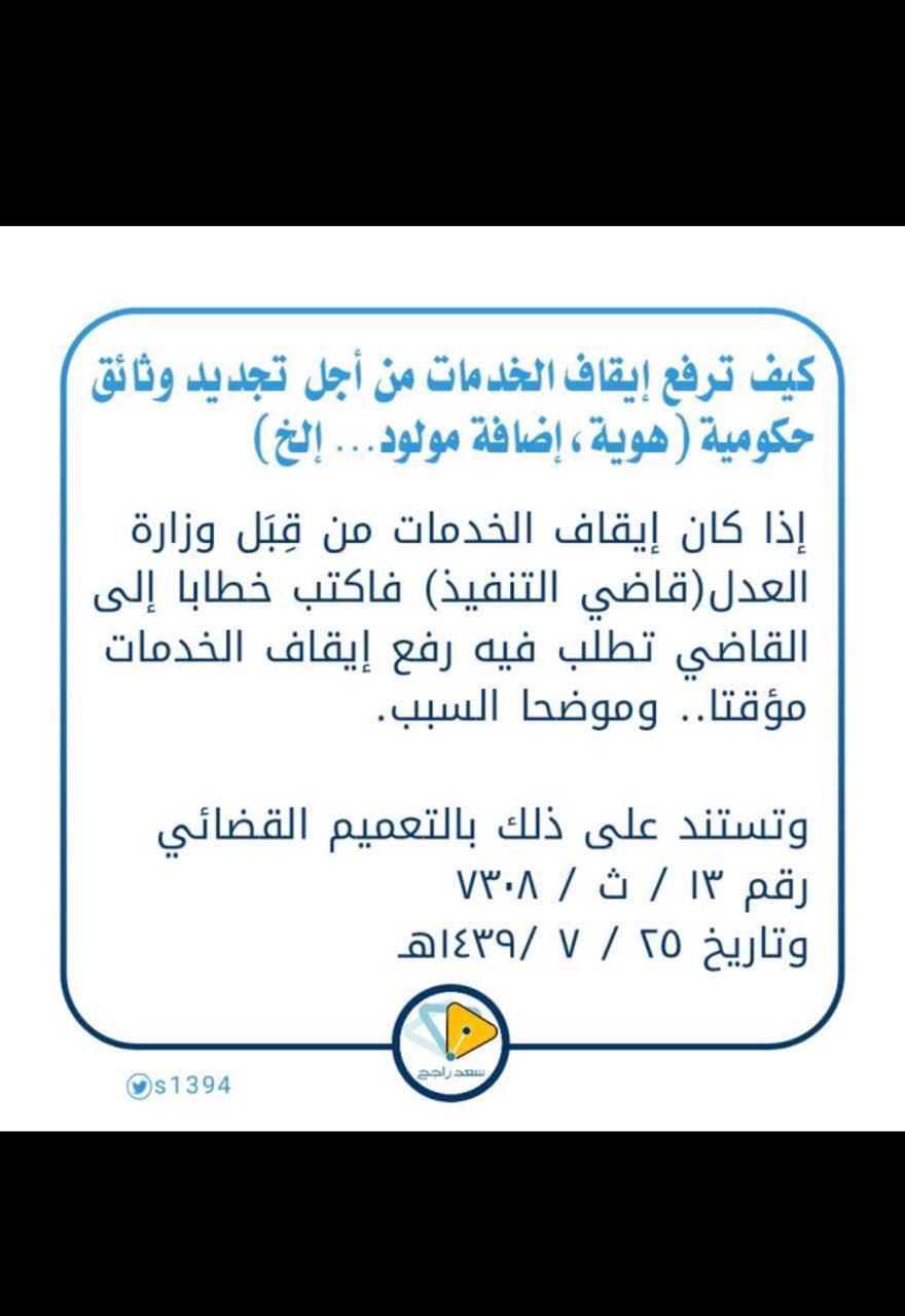 كيف استطيع رفع ايقاف الخدمات مؤقتا لتجديد الاقامة س ئل يناير 8 2018 بواسطة مجهول 1 إجابة 2 3k مشاهدة. أوضحت وزارة العدل أن رفع إيقاف الخدمات بسبب التعثر في سداد القروض يتم من خلال ثلاثة ضوابط فقط وتتمثل في سداد كامل المبلغ أو موافقة طالب التنفيذ على المهلة أو من قبل الدائرة القضائية إذا ترتب على ذلك ضرر عام. قاضي التنفيذ يقدرها ويقوم برفع وقف الخدمات أو المنع من السفر مؤقتا.