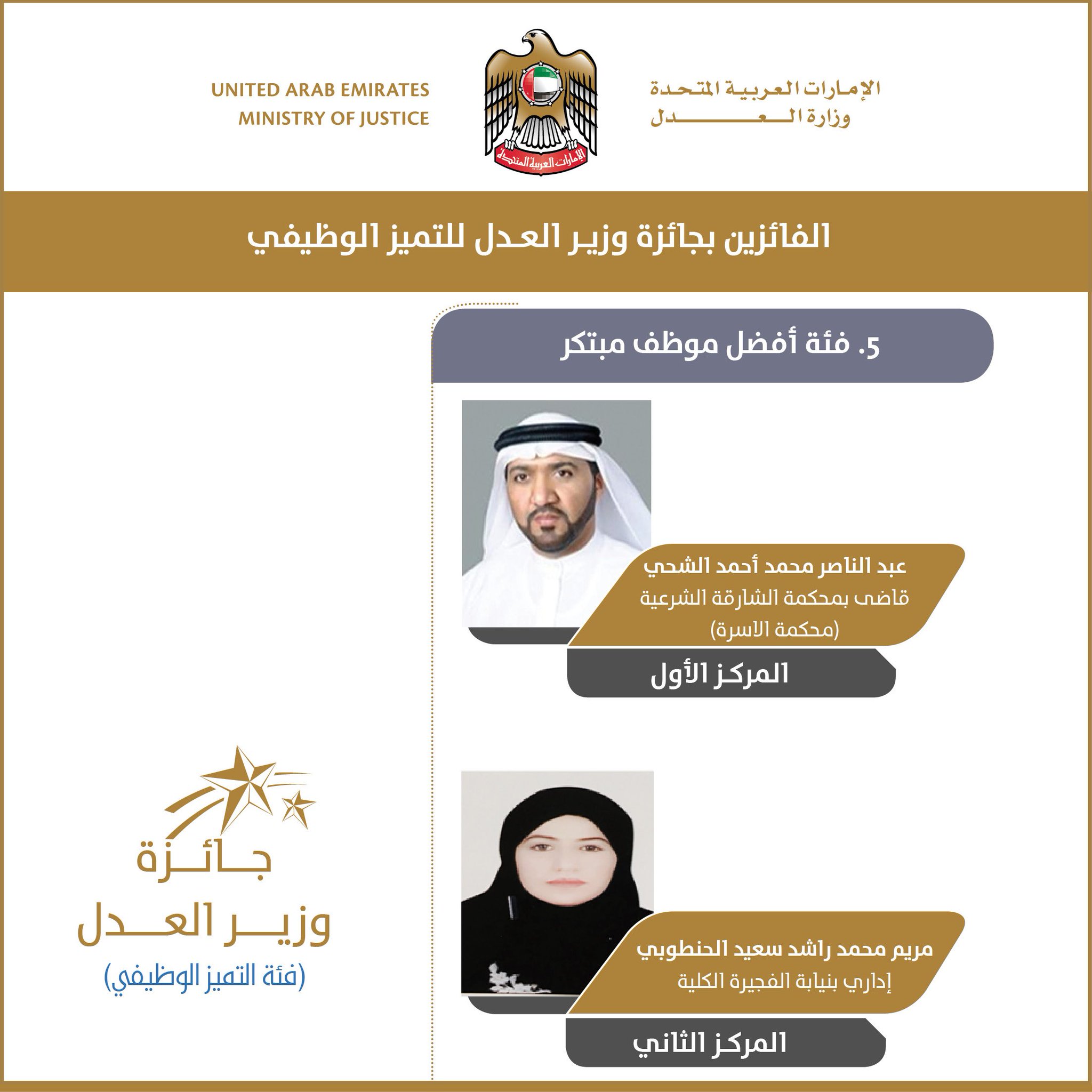 وزارة العدل Twitterissa الفائزين بجائزة وزير العدل للتميز الوظيفي و بهذه المناسبة تتقدم أسرة وزارة العدل بالتهنئة لجميع الفائزين في جائزة وزير العدل للتميز الوظيفي متمنين لهم مزيدا من التوفيق والنجاح Https T Co Rk5vearefs
