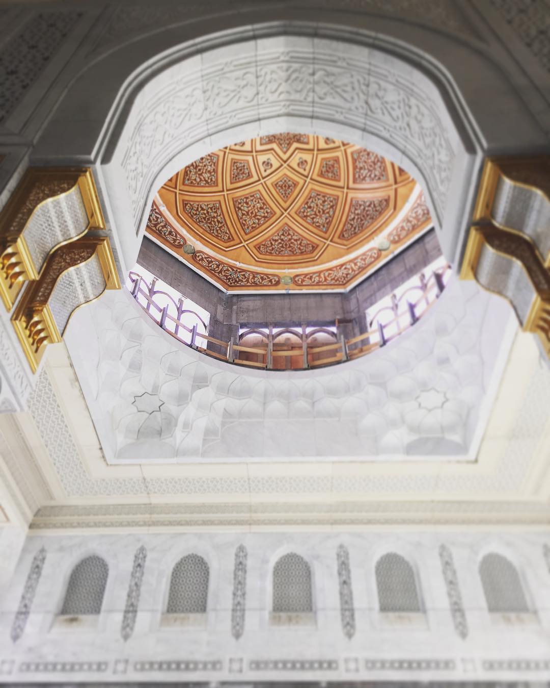 المسجد من الداخل على شكل مستطيل طولي ضلعيه 64 م و 72 م وتتوسطه قبة كبيرة يحفها أربعة أنصاف قباب كما أن كل ركن من أركان المسجد مغطى بقباب صغيرة بها عدد كبير من النوافذ المنفذة للضوء.