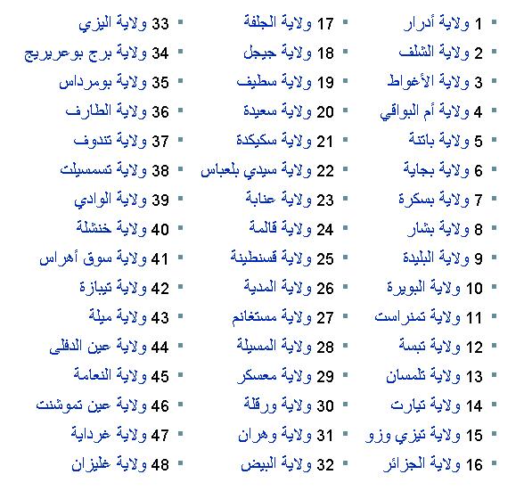 خريطة الجزائر المفصلة ولايات الجزائر بالاسماء والارقام