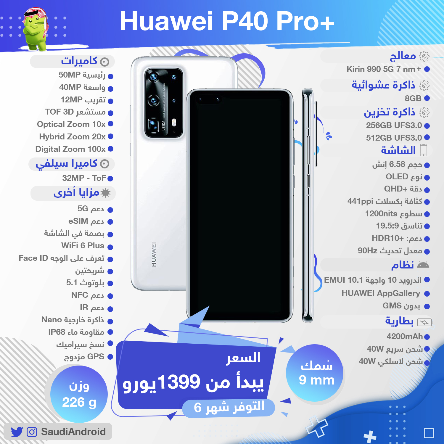 سعر ومواصفات Huawei P40 Pro Plus عالم الهواتف